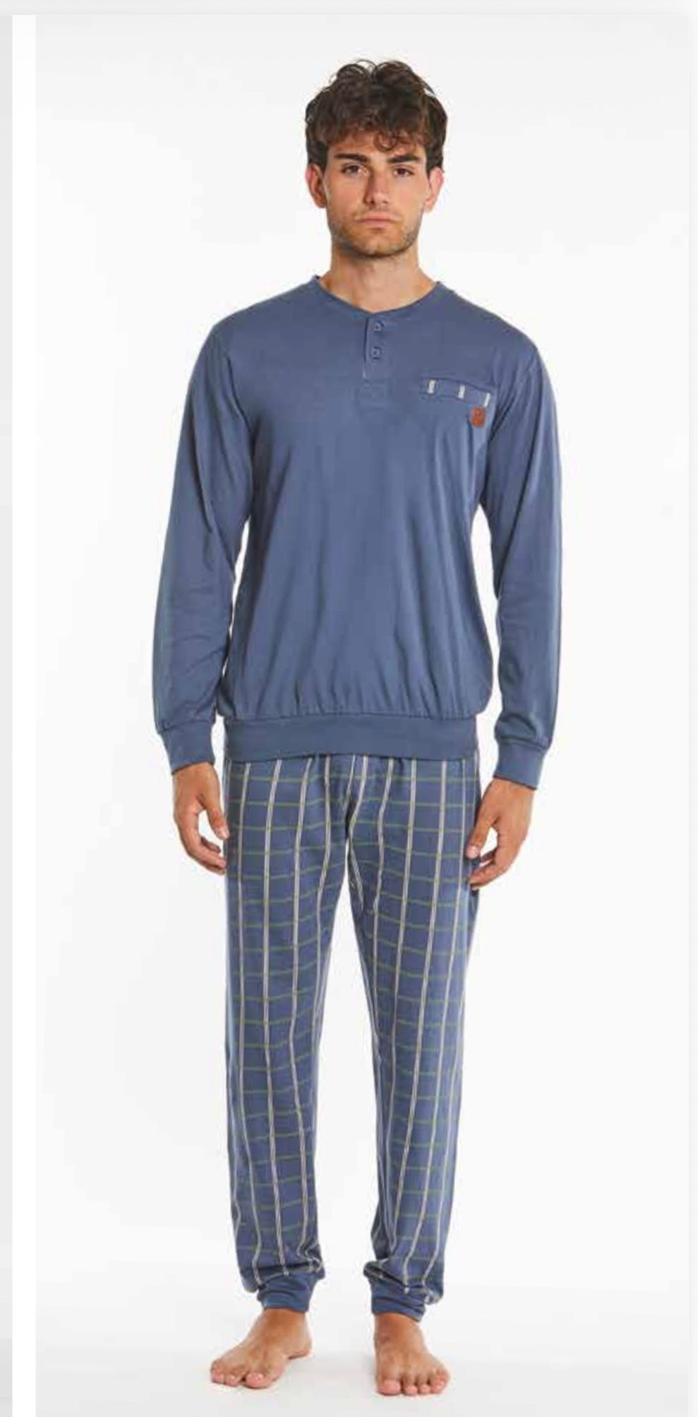 Pigiama uomo modello serafino con 2 bottoni